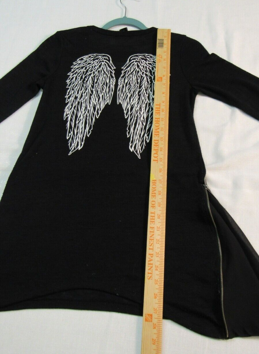 Hot Topic Angel Wings Black Knit Top Size Small Zip Side Dress Long Sleeve GOTH