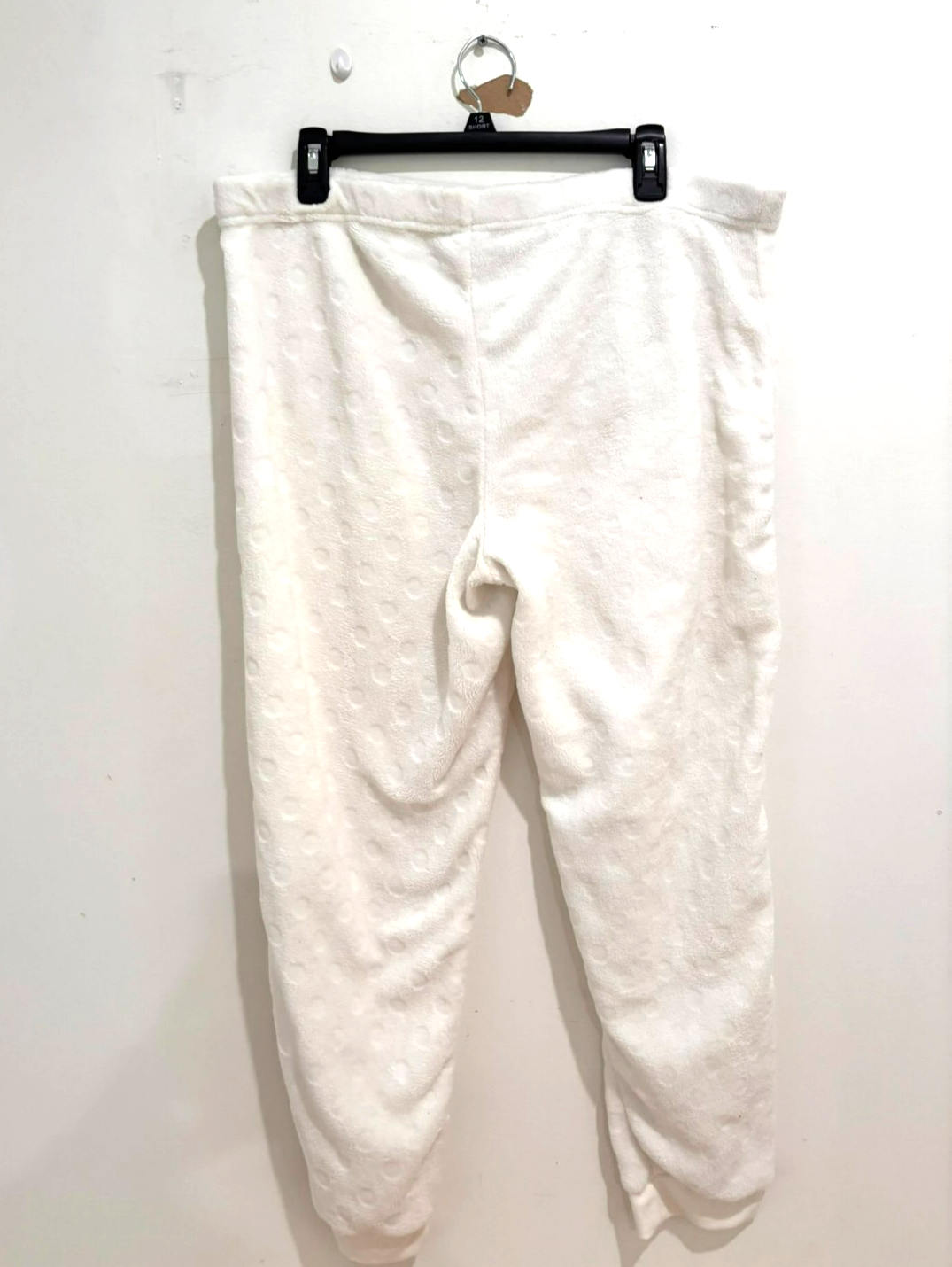 Women’s White Fuzzy Fleece Lounge Pants Textured Dot Pajama Bottoms Cozy Sleep