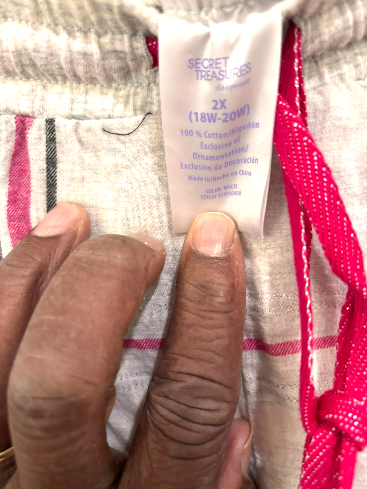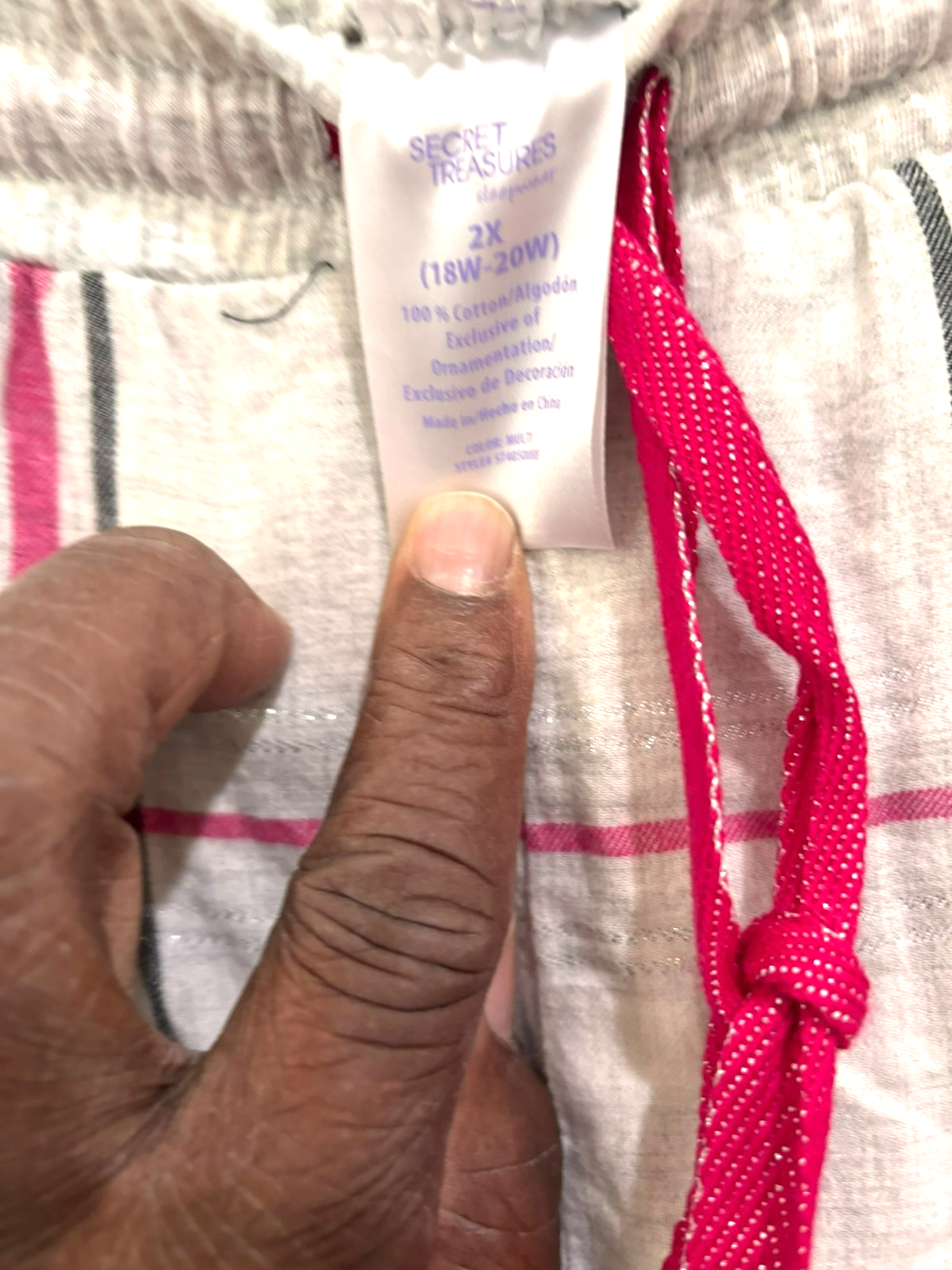 Secret Treasures Women’s 2X Gray Pink Plaid Cotton Pajama Pants Sleepwear Bottom