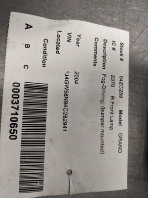 Right Fog Lamp Assembly From 2004 Jeep Grand and 34 similar items