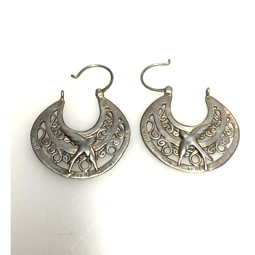 ARTIST SIGNED 925 STERLING SILVER PEACE DOVES ARRACADA EARRINGS SKY
