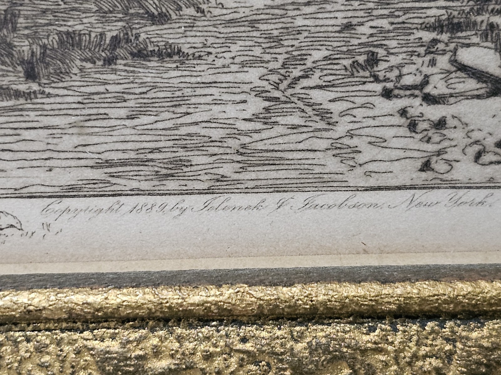 Antique 1889 I.M. Rosenberg Etching River Scene Framed Jelenek J. Jacobson NY