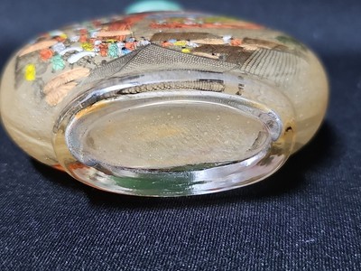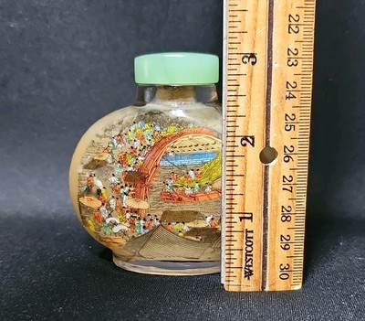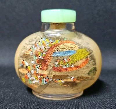 Vintage Chinese Reverse Painted Snuff Bottle Jade Stopper Village Landscape Scen