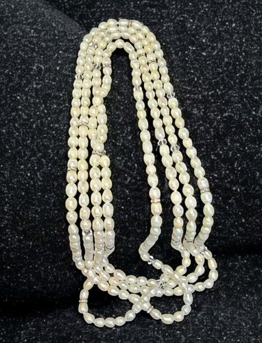 Vintage Fresh Water Pearl 6-7mm Hand Knotted w/Crystal Spacers 102" Necklace