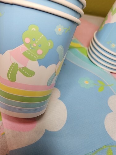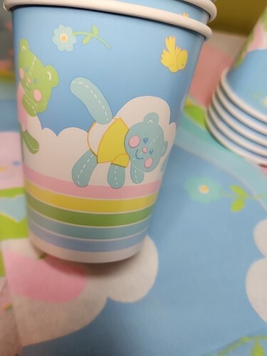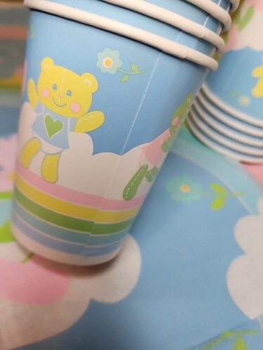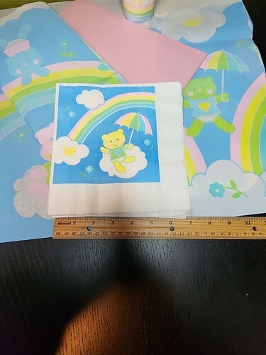 2 dozen Napkins (24) 18 Cups and 3 Table Covers--2 printed and one pink. Leftovers saved from a Babyshower in the 1980s