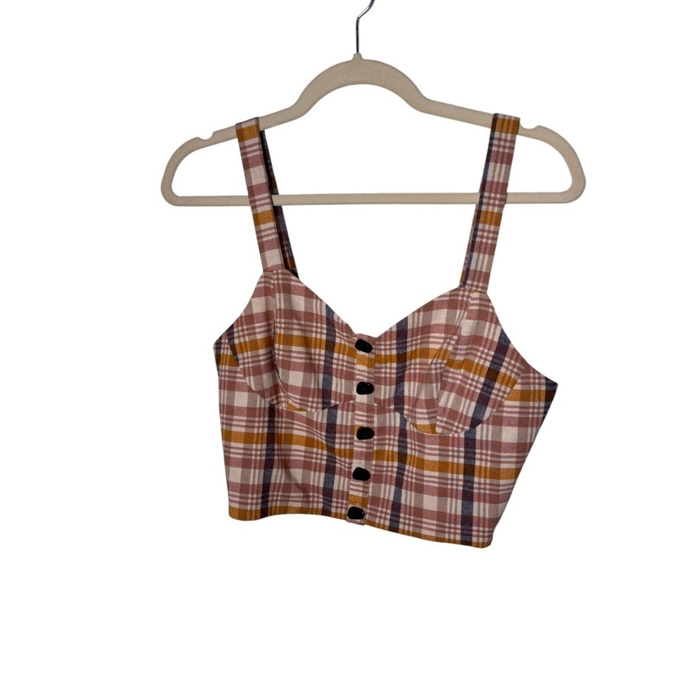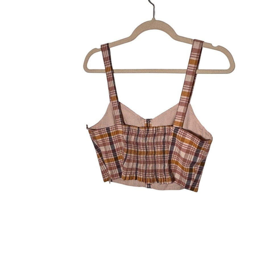 Zara Plaid Size Large Neutral Cropped Smocked Summer Vacation Retro Faux Buttons