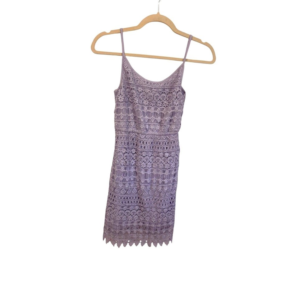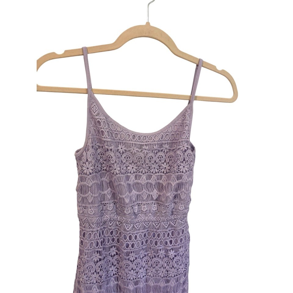 H&M Divided Lined Purple Dress Open Knit Crochet Overlay Preppy XS Festival Boho