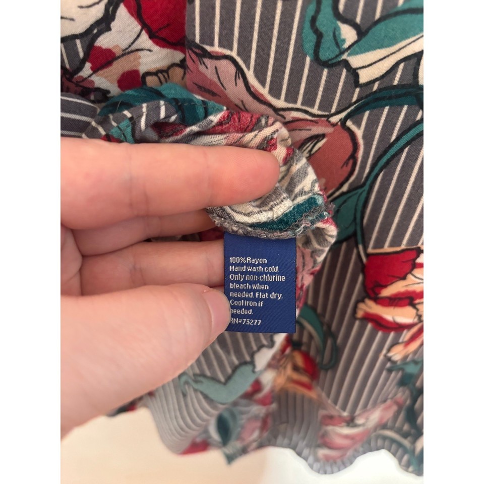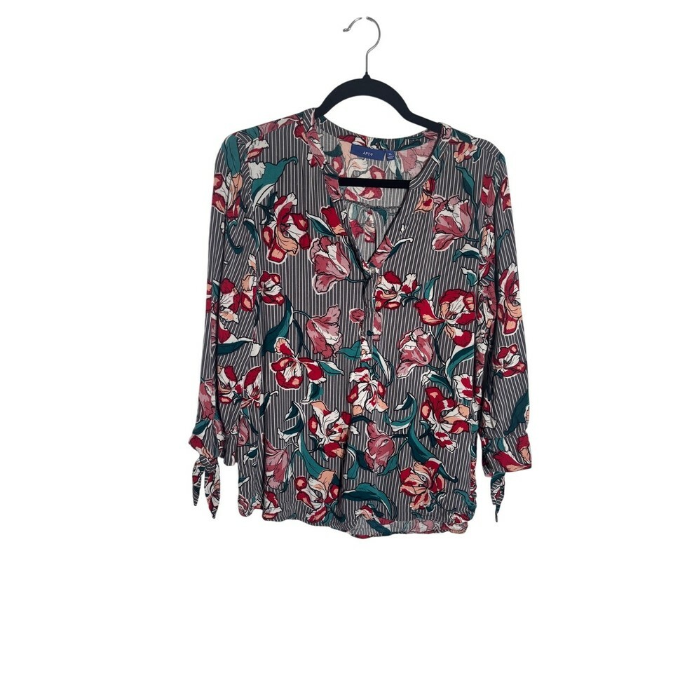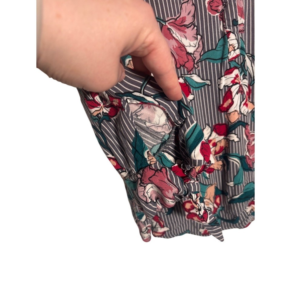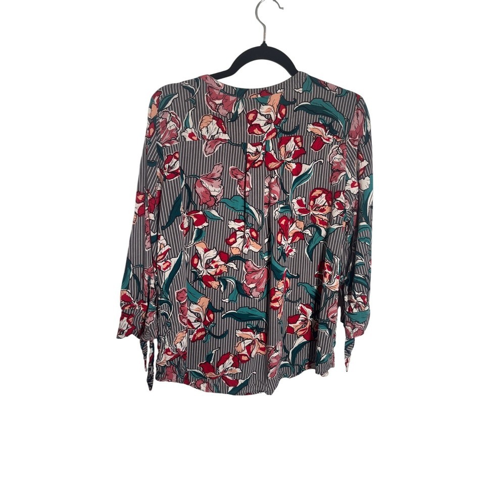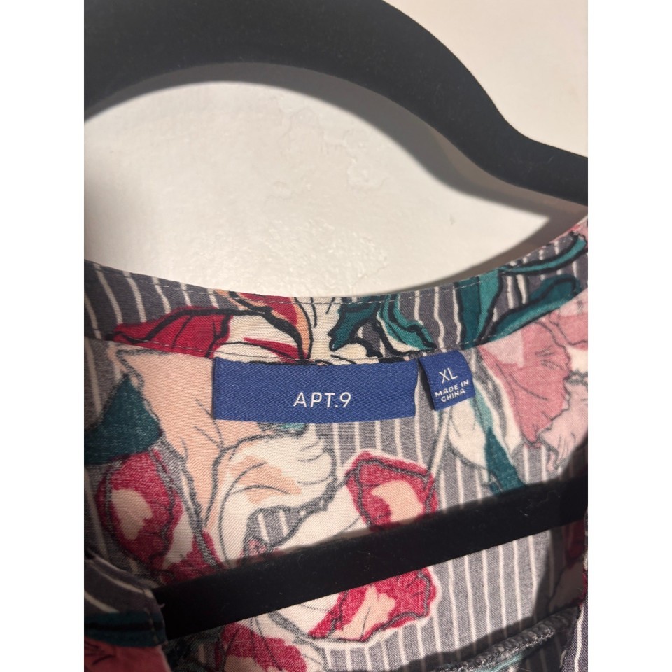 Apt. 9 XL Careerwear Hi Low Hem Blouse Popover Striped Floral Tie Sleeve V-Neck