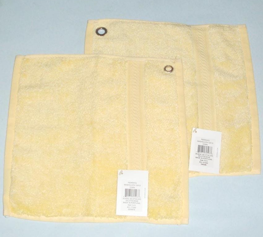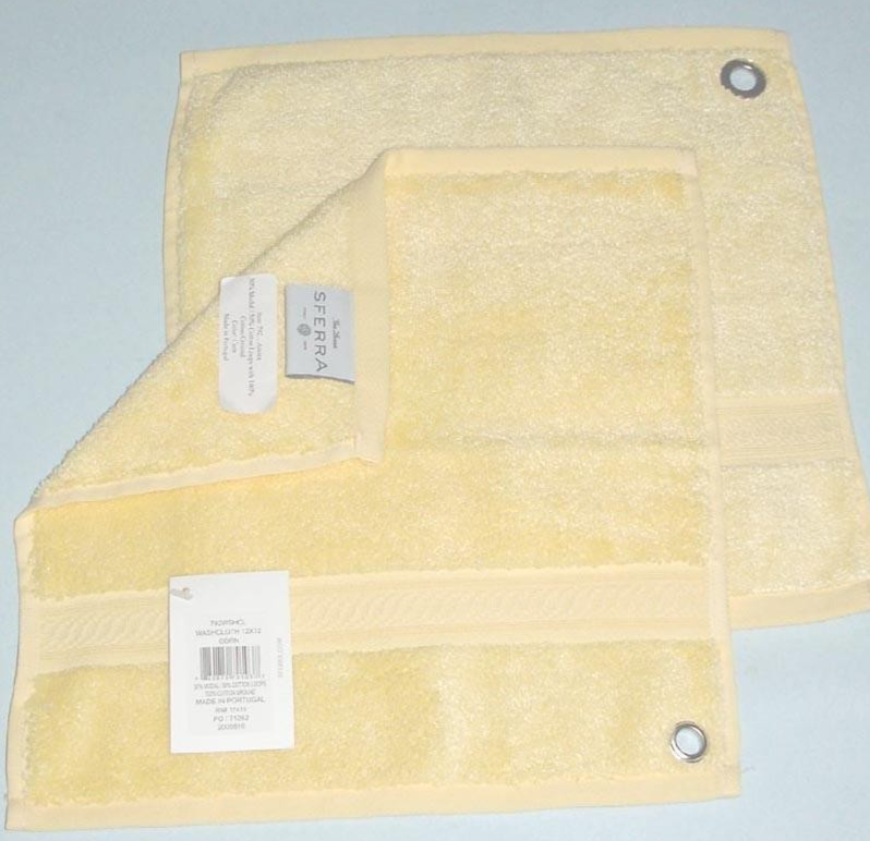 Sferra Amira Washcloth Face Towel 2 PC. in Corn Yellow with Grommets 12x12" New