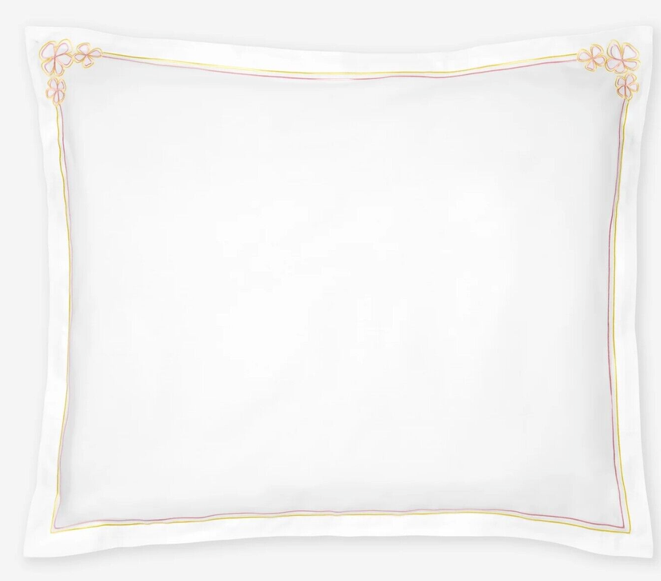 Sferra Fiorina Boudoir Sham Pink Yellow Carnation Embroidery Cotton Percale NEW