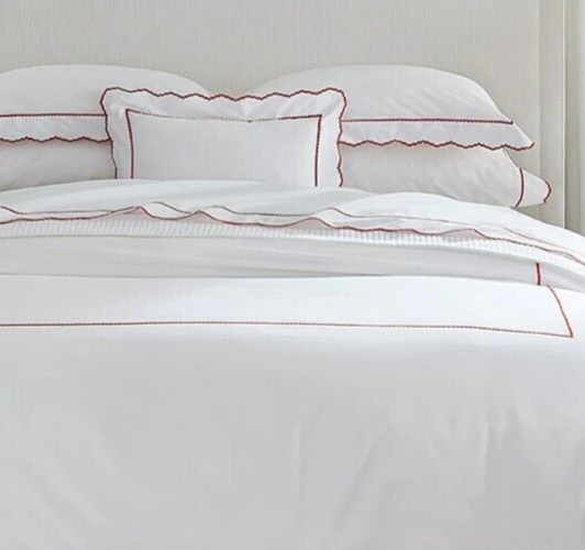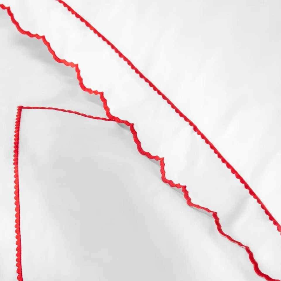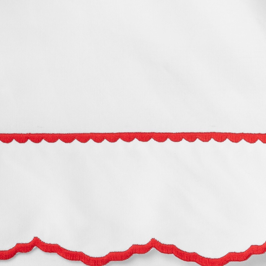 Sferra Pettine Percale Standard Pillowcases Crimson Red Scalloped Cotton
