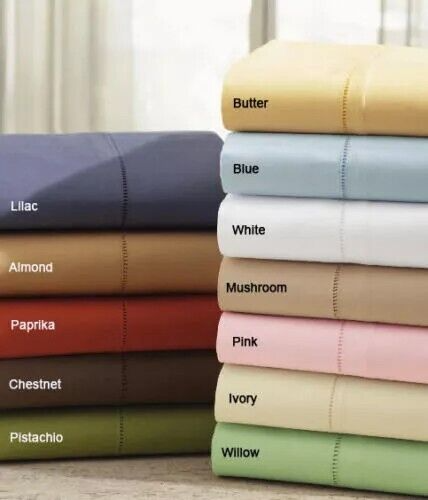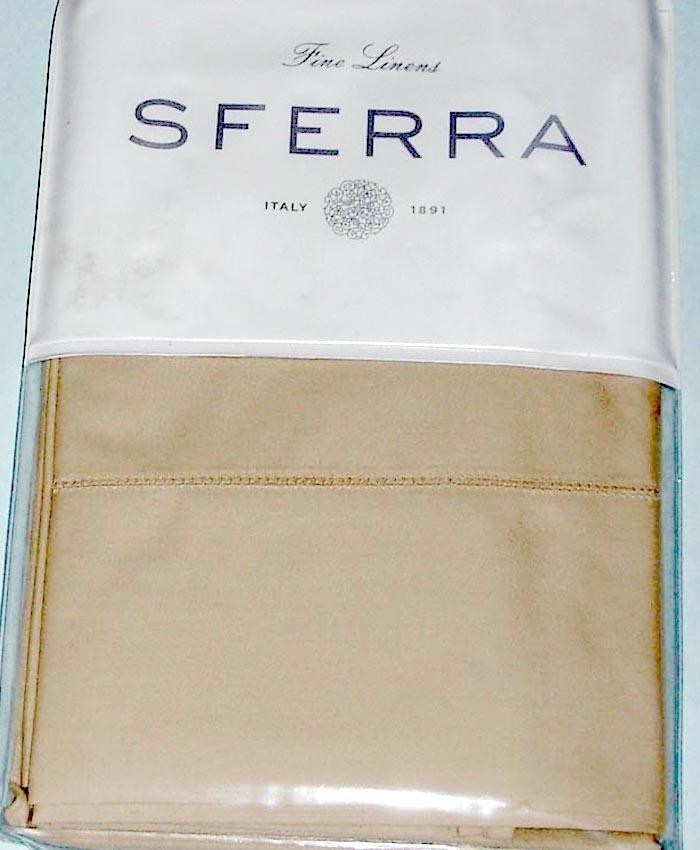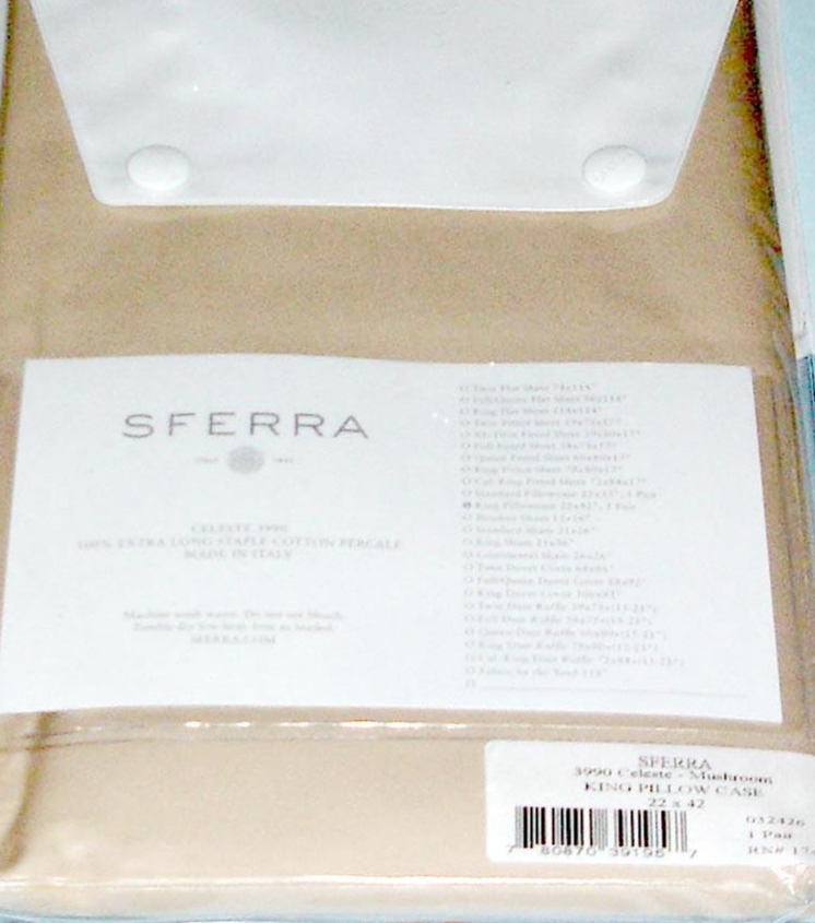 Sferra Celeste King Pillowcases Pair Mushroom Cotton Percale Hemstitch Italy New