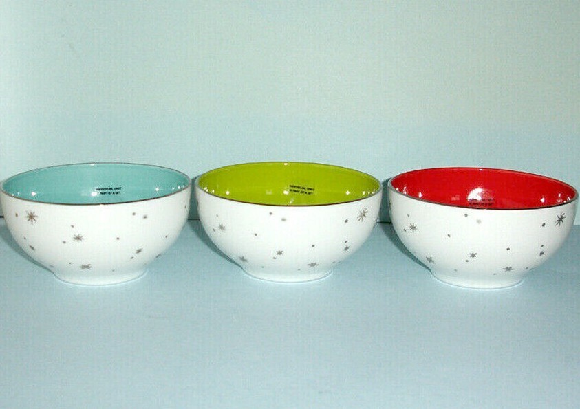 Kate Spade Lenox Mini Bowl 3 PC. Mixed Set Eat-Drink-Be Merry Aqua/Lime/Red New