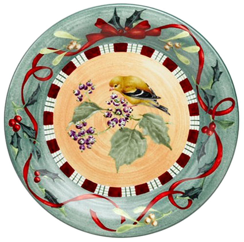Lenox Winter Greetings Everyday Goldfinch Dinner Plate 10.75" Tartan/Ribbons New