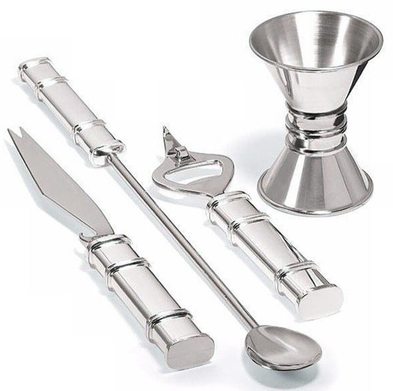 Kate Spade Lenox Pompano Point Cocktail Bar 4 PC Tool Set Silverplate Handle New