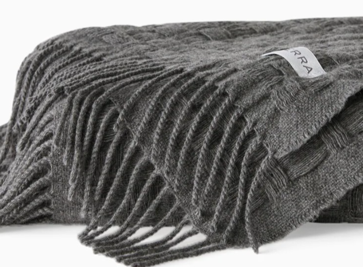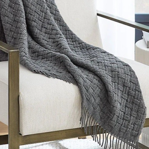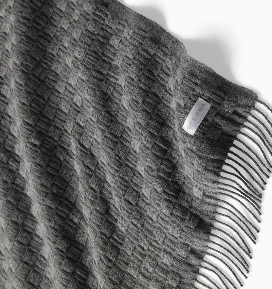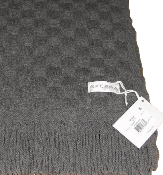 Sferra Vella Luxury Cashmere Throw Charcoal Grey Basket Weave 50x70" Fringed New