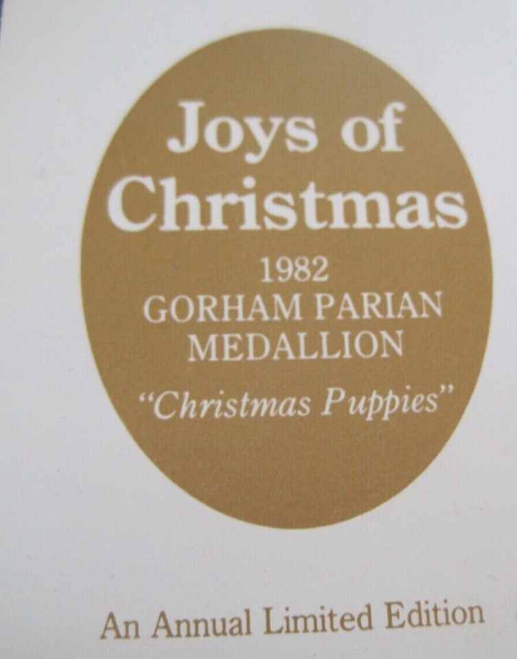 Gorham Joys of Christmas Noel 1982 Vintage Ornament Puppies Medallion 7"-Series