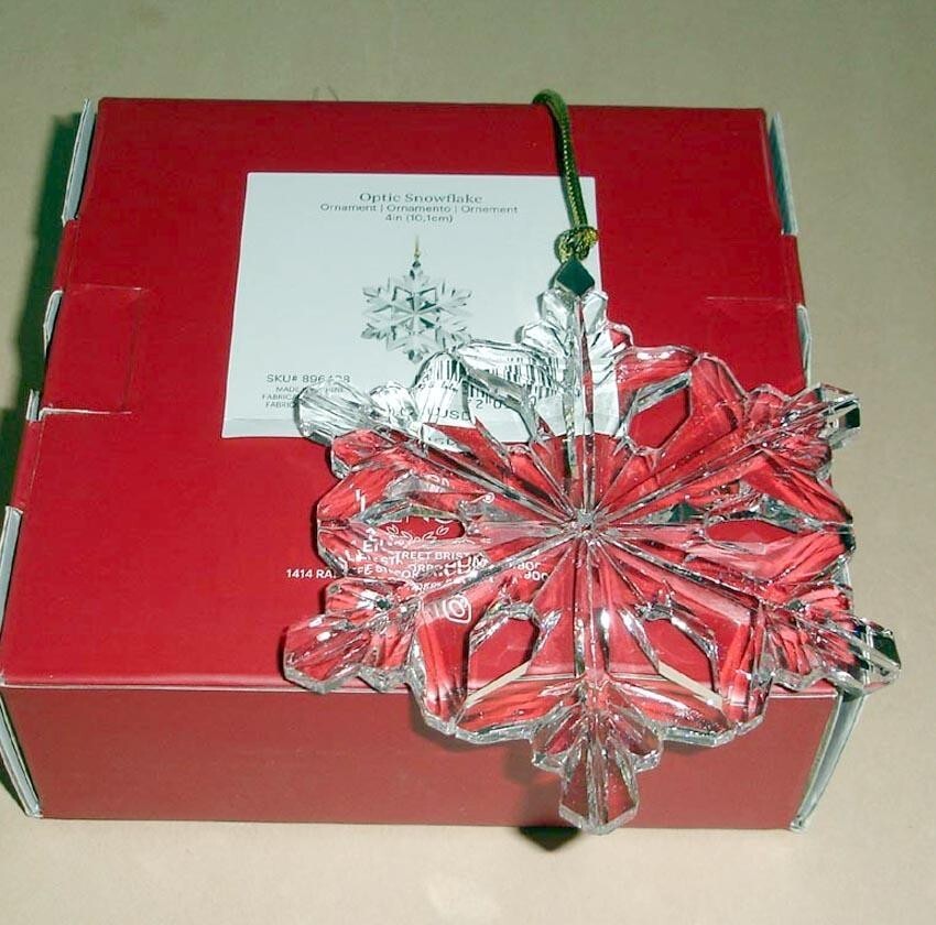 Lenox Optic Snowflake Undated Crystal Glass Ornament 4" #896408 New