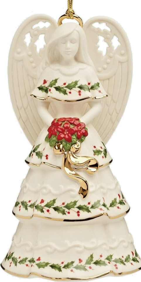 Lenox Holiday Angel Bell Ornament Holds Poinsettias Flowers 6" Figurine 2024 New