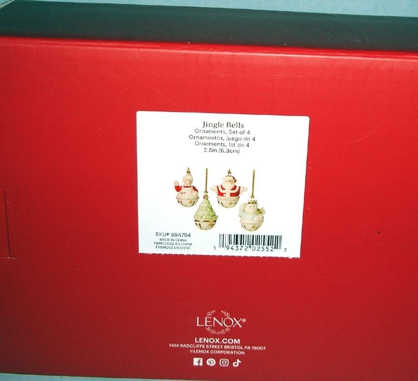 Lenox Jingle Bell 4 PC. Ornament Set Snowman Santa Mrs. Claus Christmas Tree New