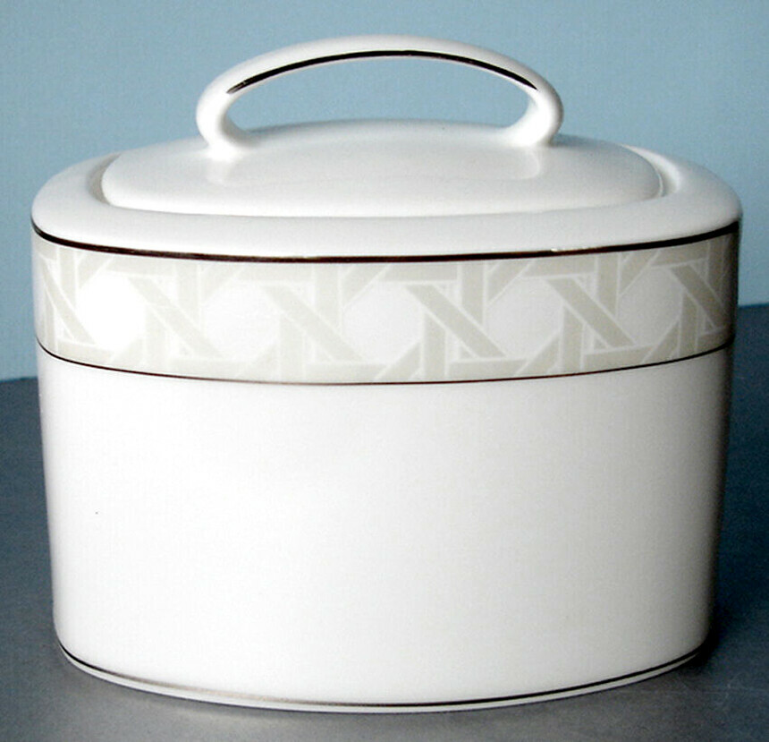 Elegant, fine white bone china covered sugar bowl