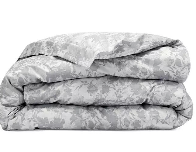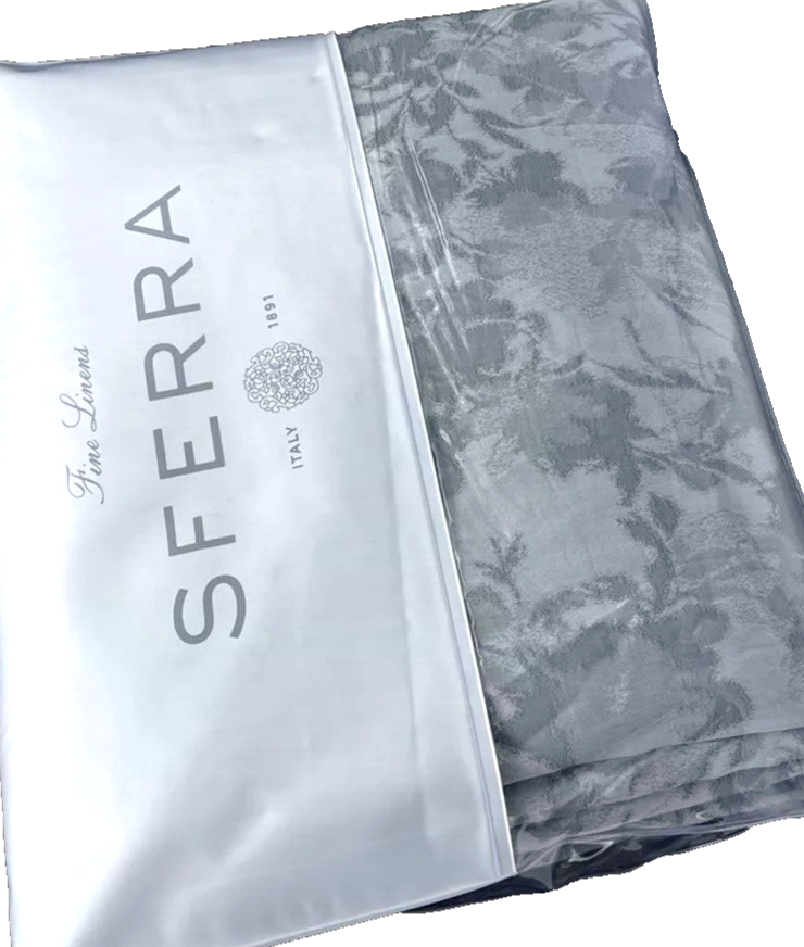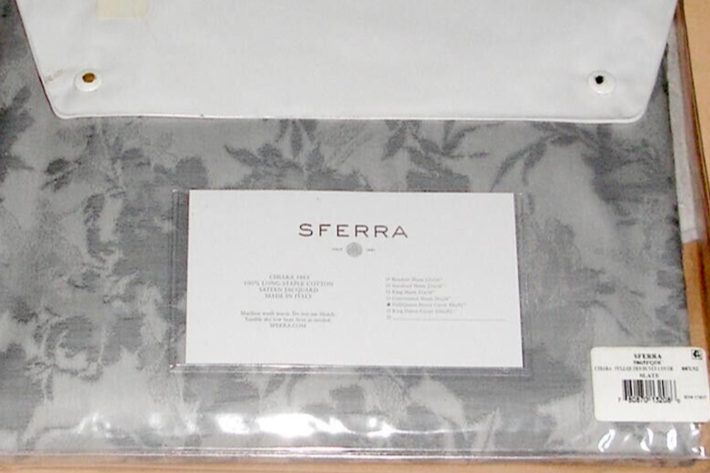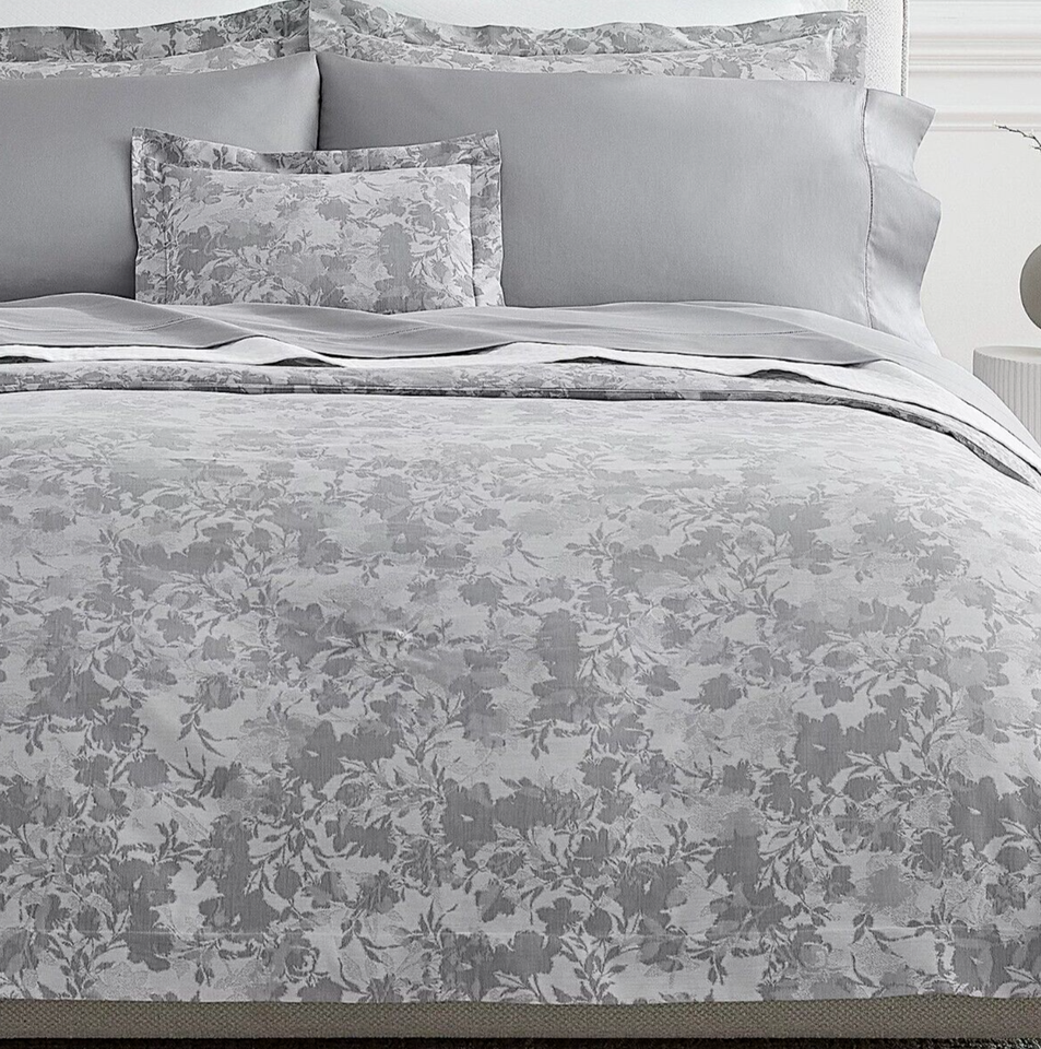 Sferra Chiara Queen Duvet Cover Slate Grey Floral Cotton Sateen Jacquard New