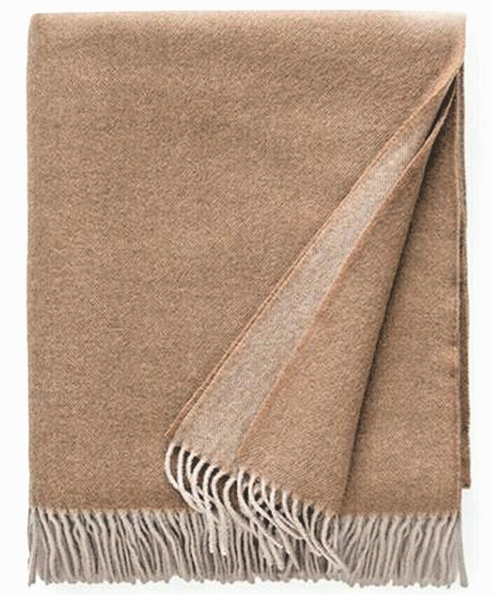 Sferra Tartini Merino Wool Fringed Throw Pebble Brown Soft Twill Weave 50x70 NEW