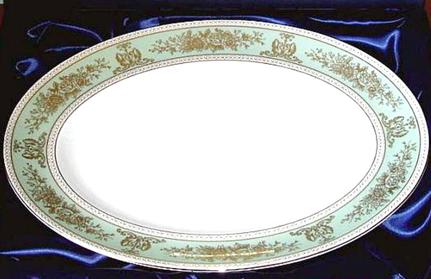 Wedgwood Columbia Oval Serving Platter 13.75" Sage Green England NEW in Box