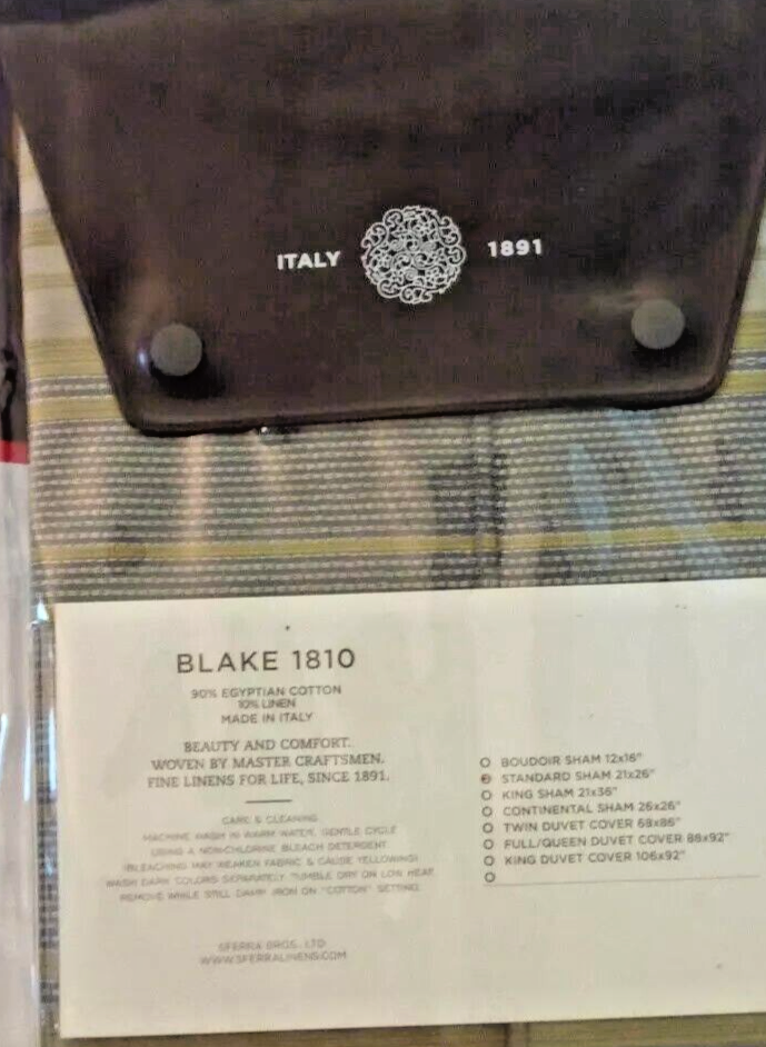 Sferra Blake Standard Sham Lilac 600 TC Striped Egyptian Cotton/Linen Italy New