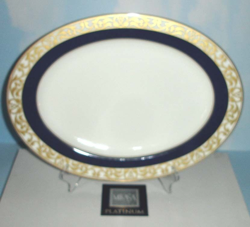 Mikasa Lily Moire Oval Serving Platter 15" Gold Scrolls AK048 NEW in Box