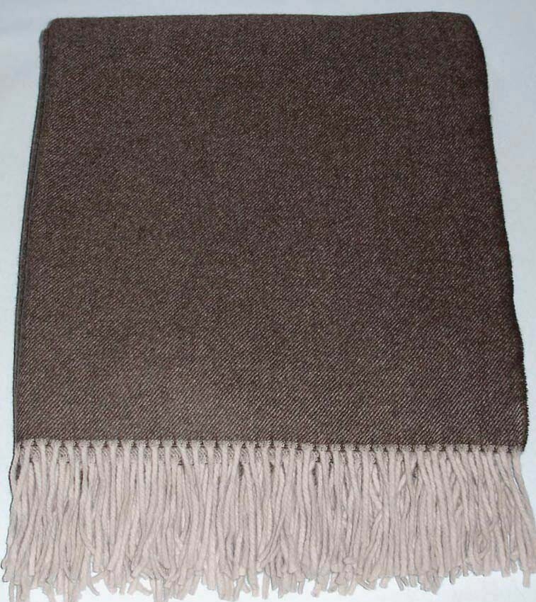 Sferra Tartini Merino Wool Throw Coffee Brown Fringed Twill Weave 50x70" New
