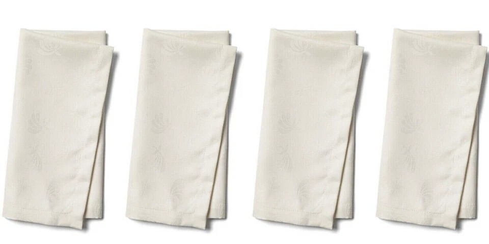 Sferra Chatham Dinner Napkins Oyster Ivory 4 PC. Floral Fan 22x22" Easy Care New