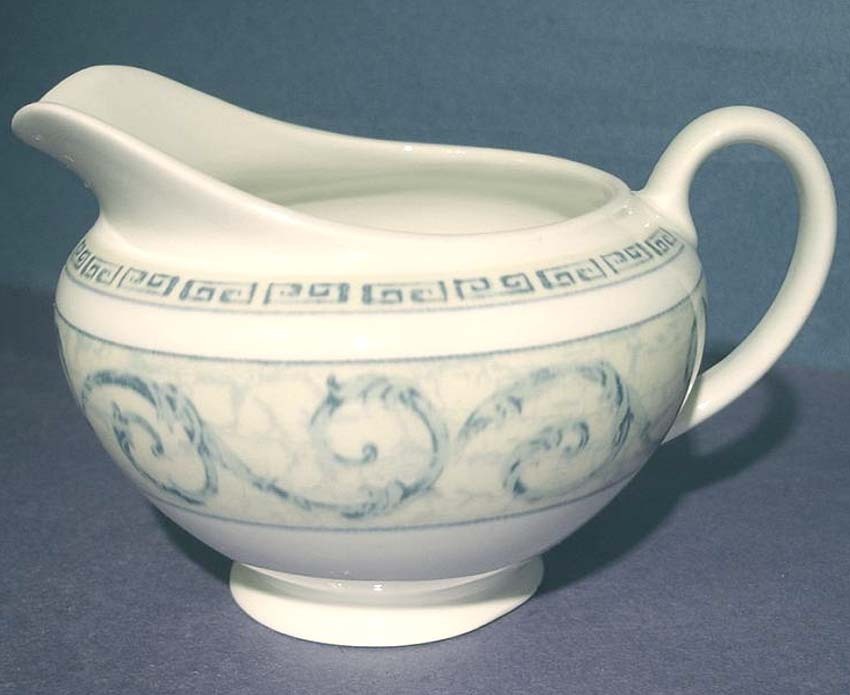 This footed porcelain creamer features a Greek key and
