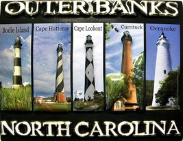 Outer Banks North Carolina with 5 Lighthouses Highlight Fridge Magnet