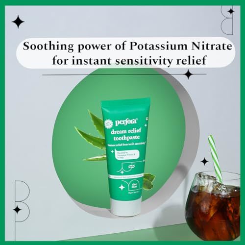 Product description: Perfora Dream Relief Toothpaste for Sensitivity Relief is the Perfect Combination of Scientifically Proven and Natural Ingredients. The Formulation Contains Active Ingredients Like Nano Hydroxyapatite and Potassium Nitrate That are Clinically Proven to Instantly Reduce Teeth Sensitivity. in Addition, Natural Ingredients Like Turmeric Extract and Clove Essential Oil Help in Reducing Tooth Pain. This Toothpaste is Sls (Sodium Lauryl Suphate) Free, Titanium Dioxide Free, and Sodium Saccharin Free. Perfora Dream Relief Toothpaste is Made Safe Certified and Doesn?T Contain Any Artificial Colors or Toxic Ingredients. This Toothpaste has Refreshing Taste Notes of Peppermint, Spearmint, and Aloe Vera That Give an Instant Fresh Breath After Brushing.