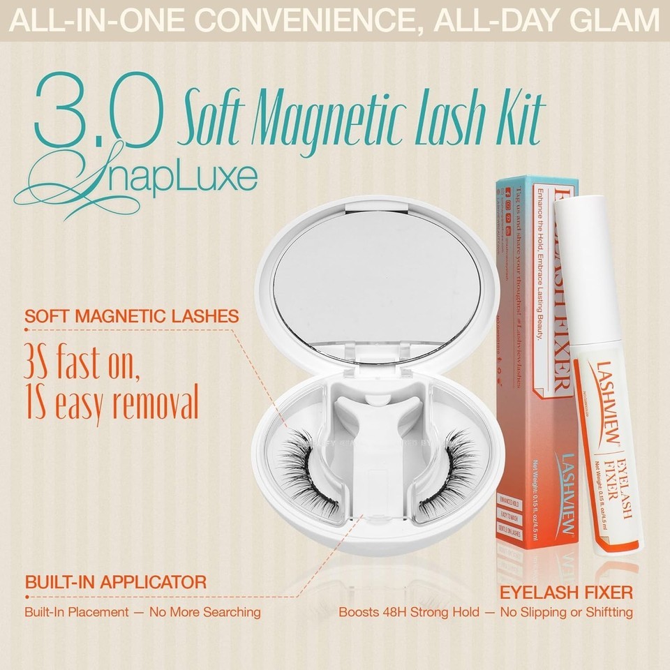 New LASHVIEW Magnetic Eyelashes w/ Applicator,Reusable Soft Magnetic Eyelashes