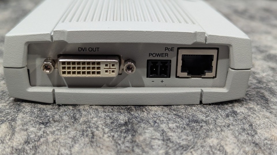 Cleaned and disinfected. Tested to power on with the POE, no other testing was done. Minor usage wear as shown in the pictures. Nothing that affects its functionality. Includes a POE Power supply, ethernet cable, video cable, DVI Cable, and audio Aux cable.