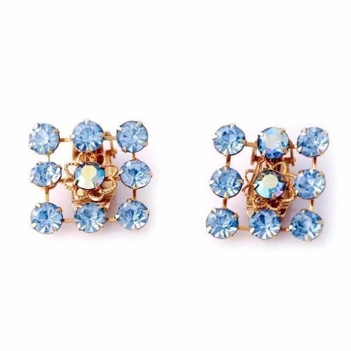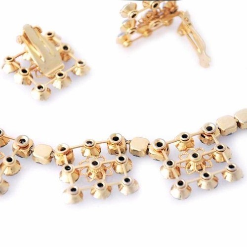Vintage Blue Aurora Borealis Parure Necklace/Ears 1950S Estate Jewelry Costume