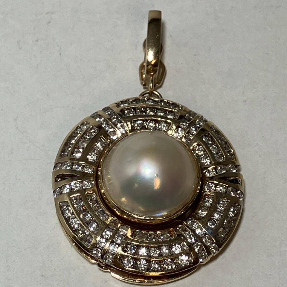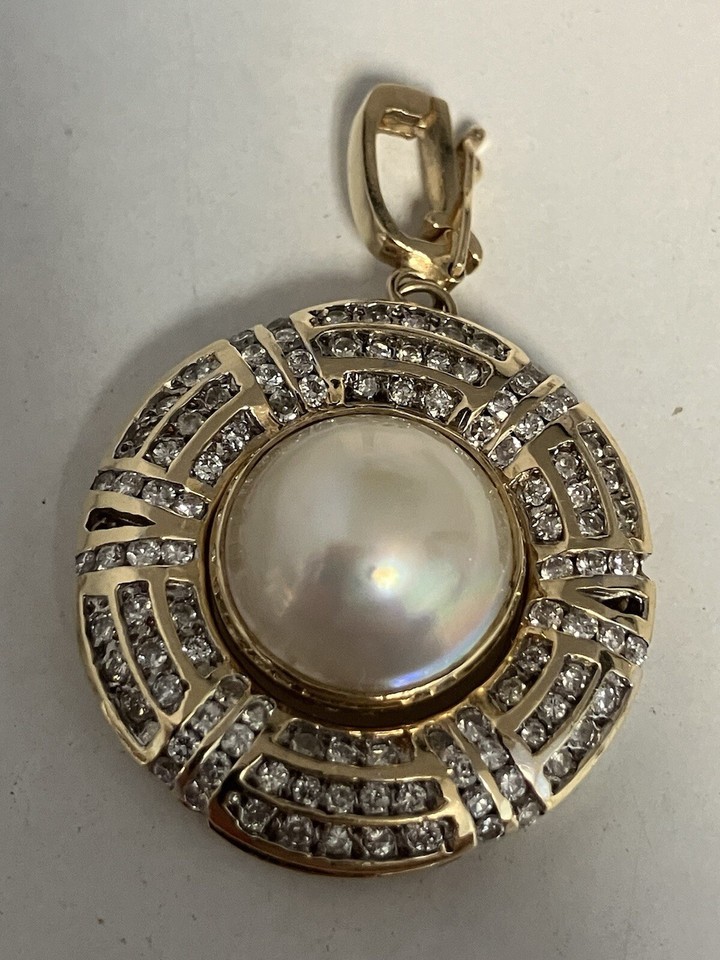 Estate 14k Yellow Gold Mabe Pearl & Diamond Enhancer Pendant 15.1g