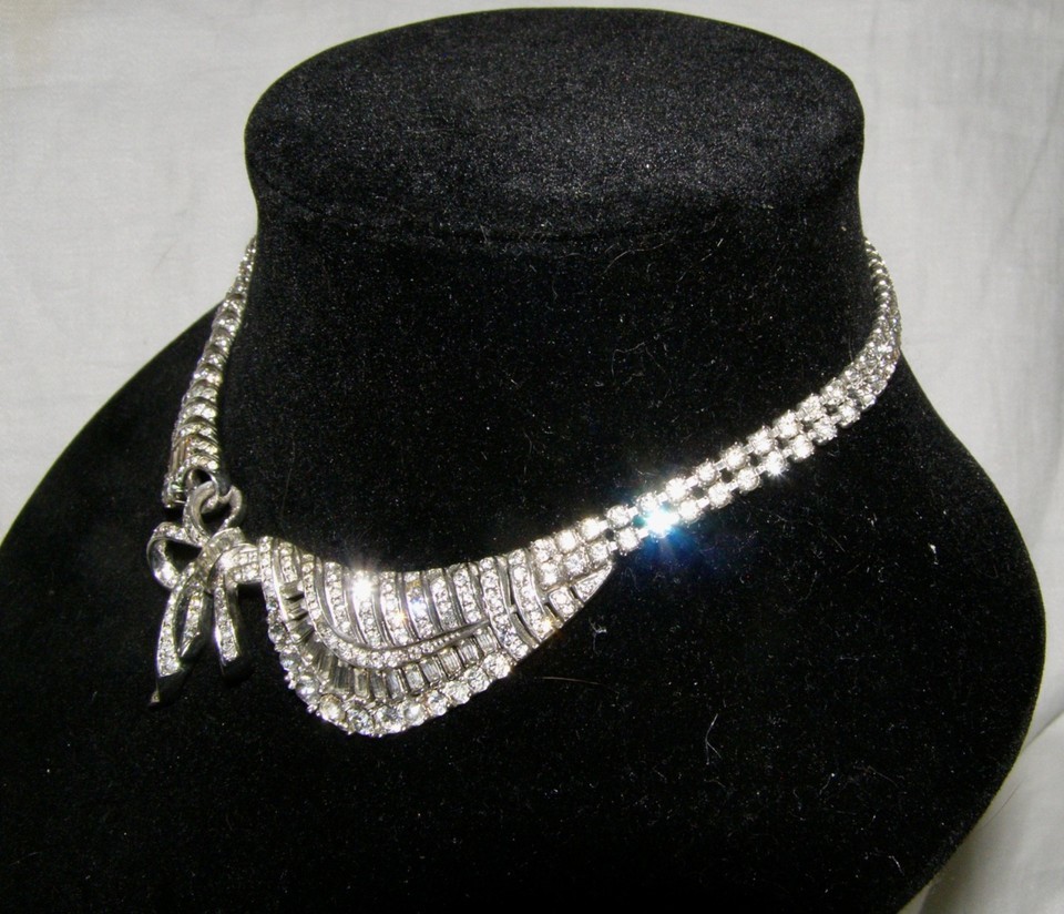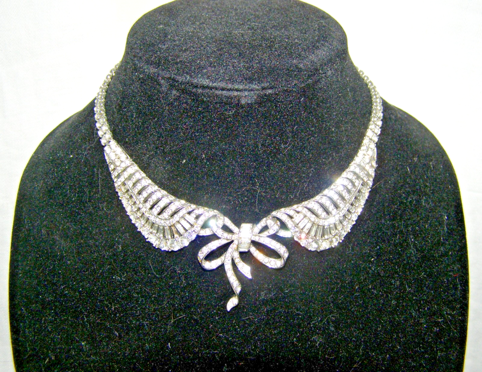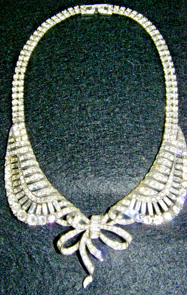VINTAGE MARCEL BOUCHER 1940’s-50’s RHINESTONE CHOCKER NECKLACE, PETER PAN COLLAR