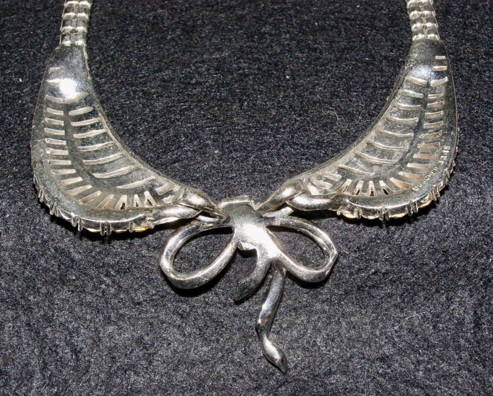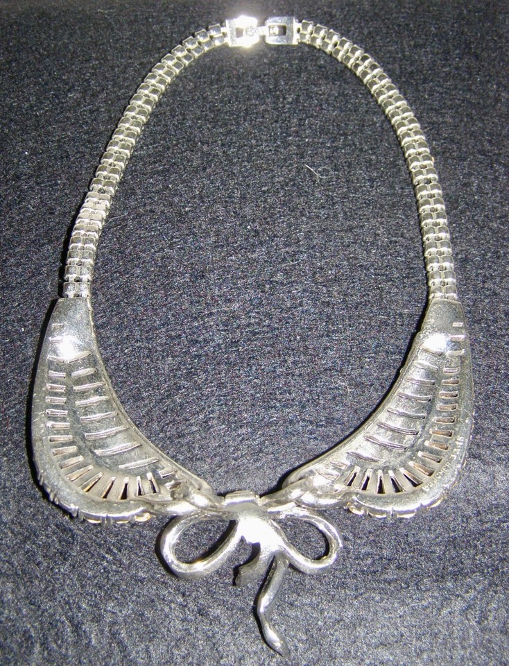 RHINESTONE CHOCKER NECKLACE, PETER PAN COLLAR STYLE w/ BOW |