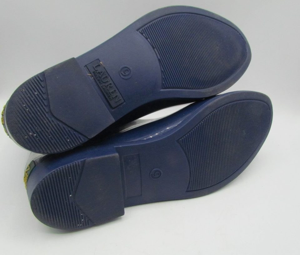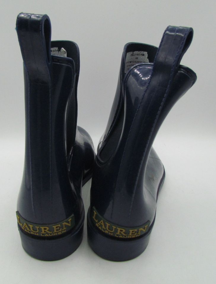 Ralph Lauren Blue Tally Rubber Rain Boots Size 9 black Stretch Panel