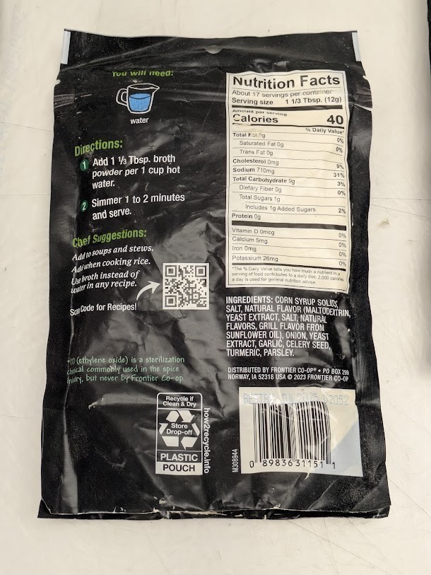 Pack of 3 Frontier Co-op Vegetarian Powder Flavored Broth 6.98 oz EXP 07/2025