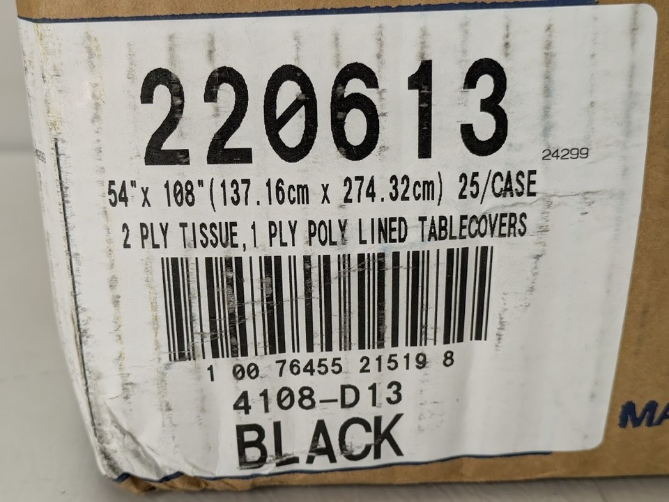 Hoffmaster 2-Ply Tissue Paper 1-Ply Poly Table Cover Black, 108" x 54" 25/Pack