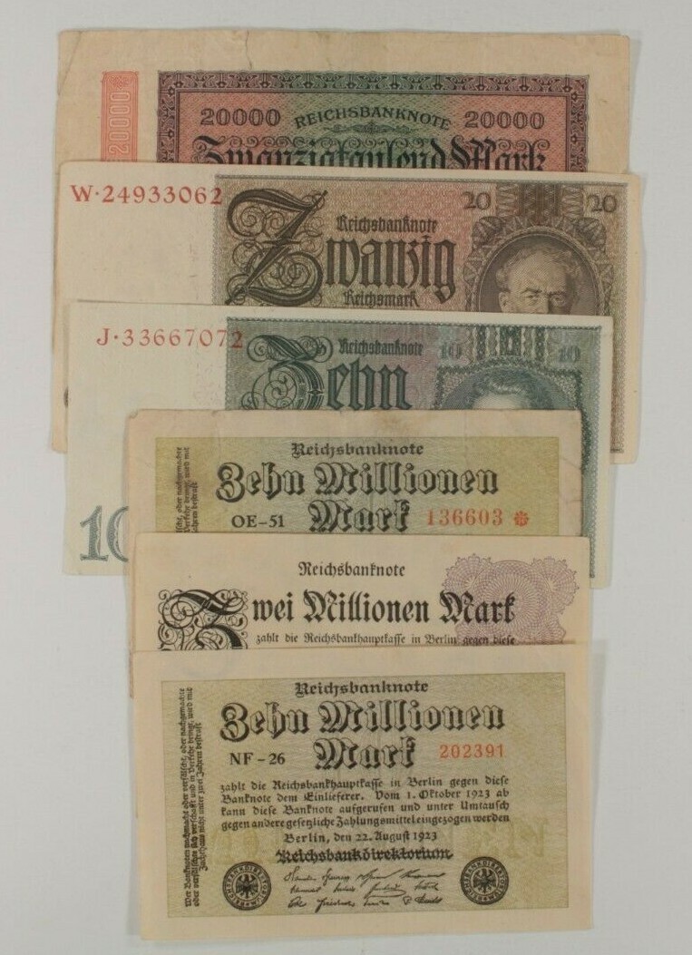 1923-1929 ALLEMAGNE Set de monnaie de 6 notes // WEIMAR REPUBLIC TRANSEUR REICHSBANKNOTE