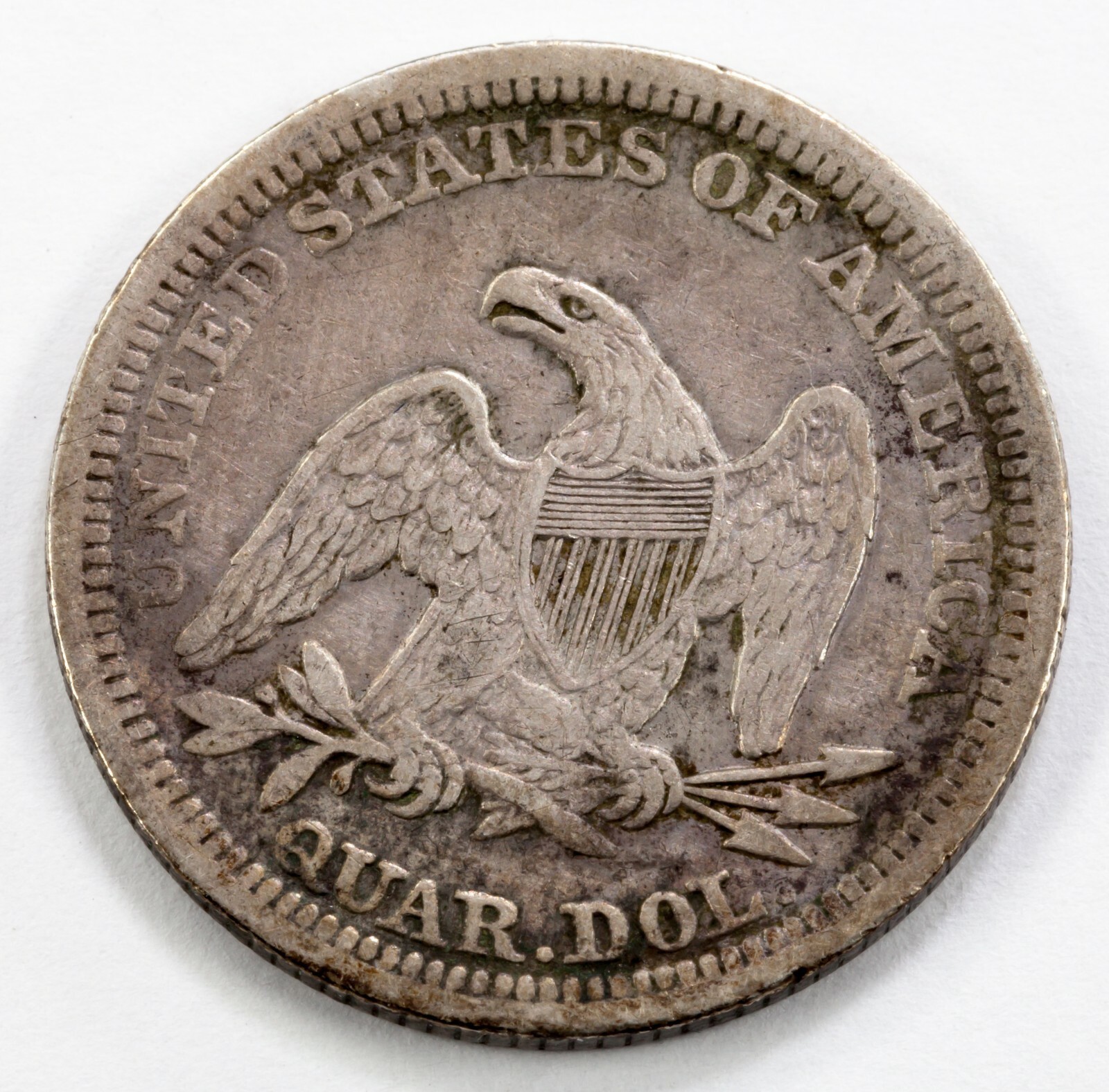 1857 25c Assied Liberty Quarter en amende + etat, Liberty Bold et Clear