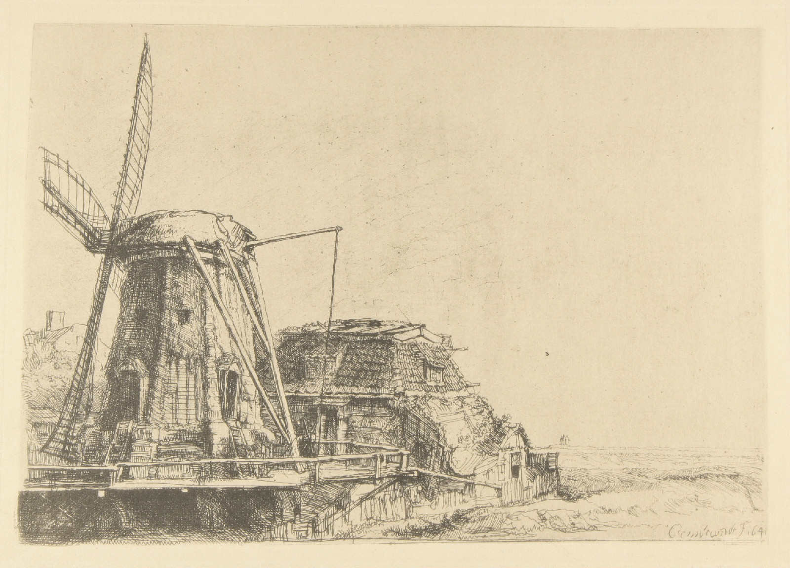 "The Windmill" par Rembrandt, restreinte de la gravure