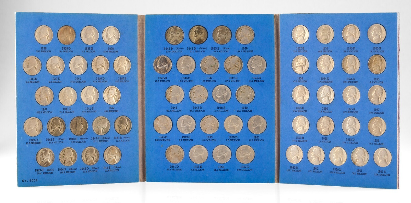1938 - 1961 Jefferson Nickel Set Moyenne circule complet (11 Silver + Reg)