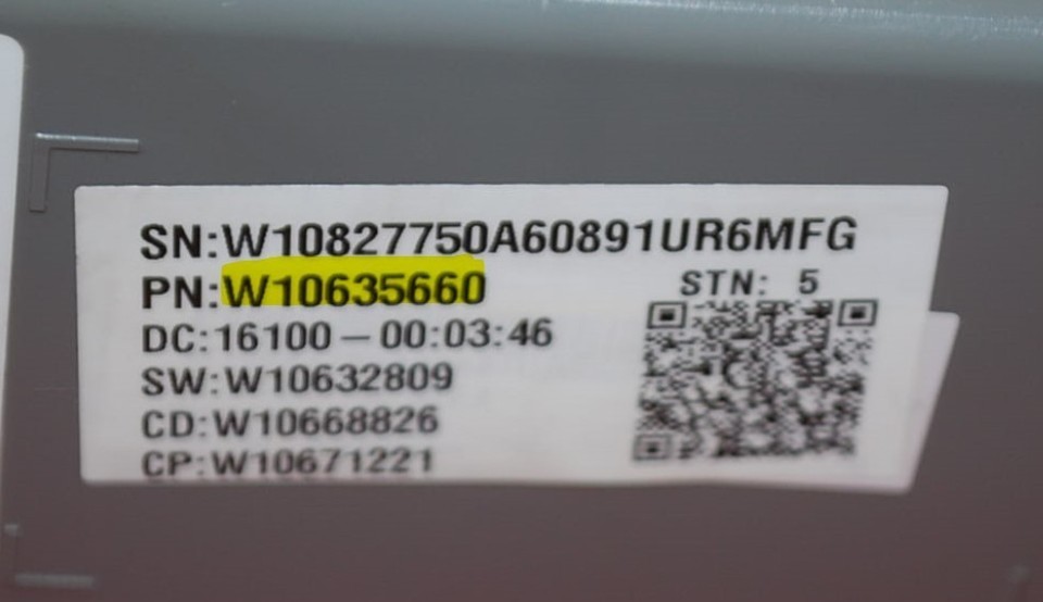 Cross Reference Information: Part Number WPW10635660 (AP6023535) replaces W10635660, 3450344, PS11756880