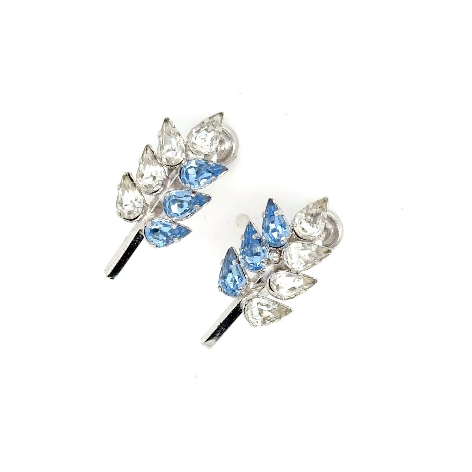 Comprend des pierres fausses en forme de poire en bleu glaciaire et en forme de poire disposees sous la forme d'une feuille avec des poteaux a vis